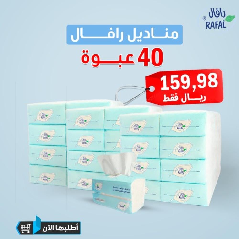 عرض مناديل رافال 40 عبوة ، 500 منديل لكل عبوة ب 3 طبقات من الجودة العالية