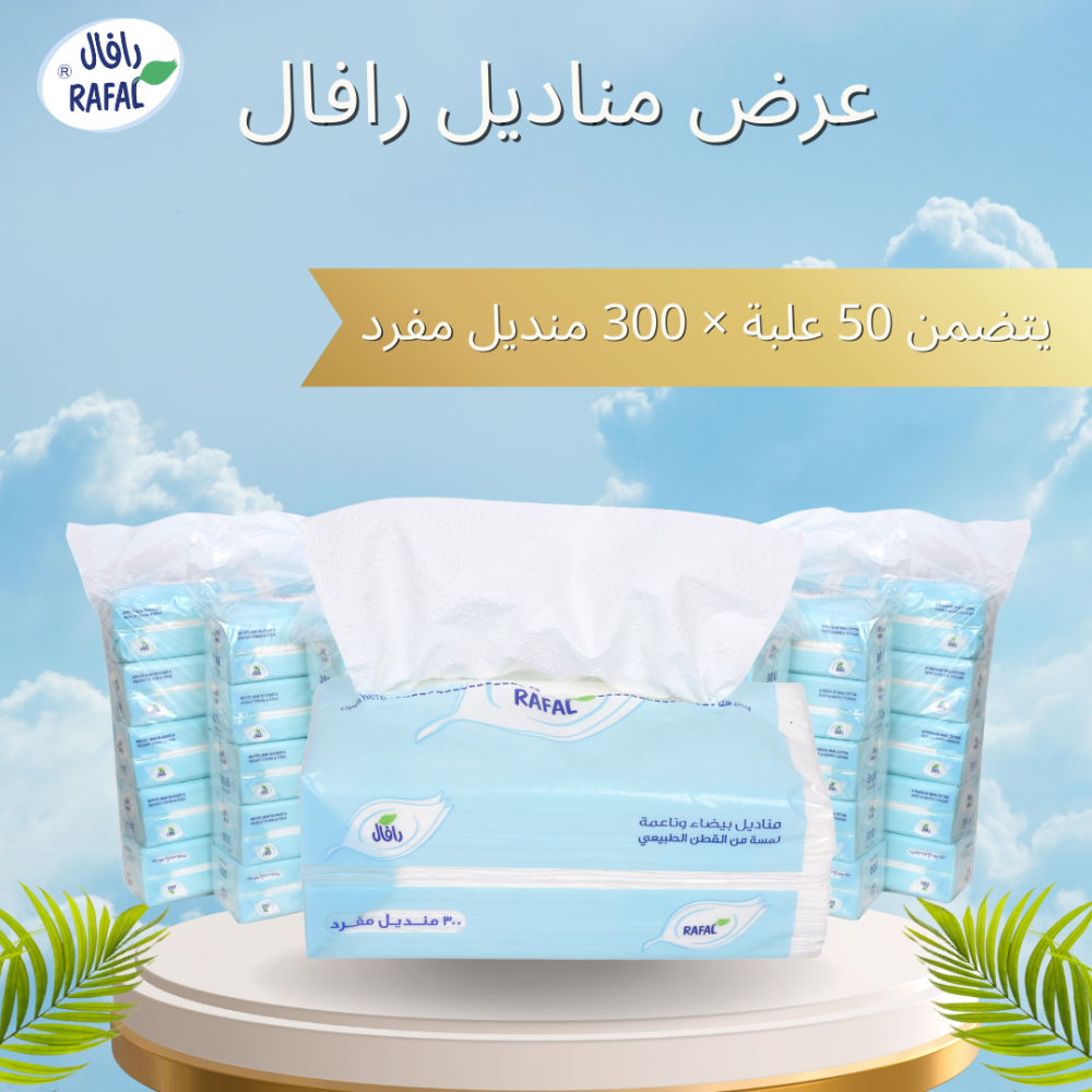 استثمر في الجودة والنظافة مع رافال – الخيار الذكي لكل من يبحث عن مناديل ورقية ناعمة، قوية، وآمنة في كل مكان وزمان.